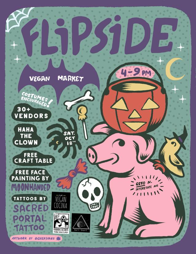 Sat., Oct. 18th from 4-9pm, we'll be slingin' our frozen desserts (including some new fall seasonal specials) at Flip Side Vegan Market, with 30 frighteningly fantastic vegan vendors!