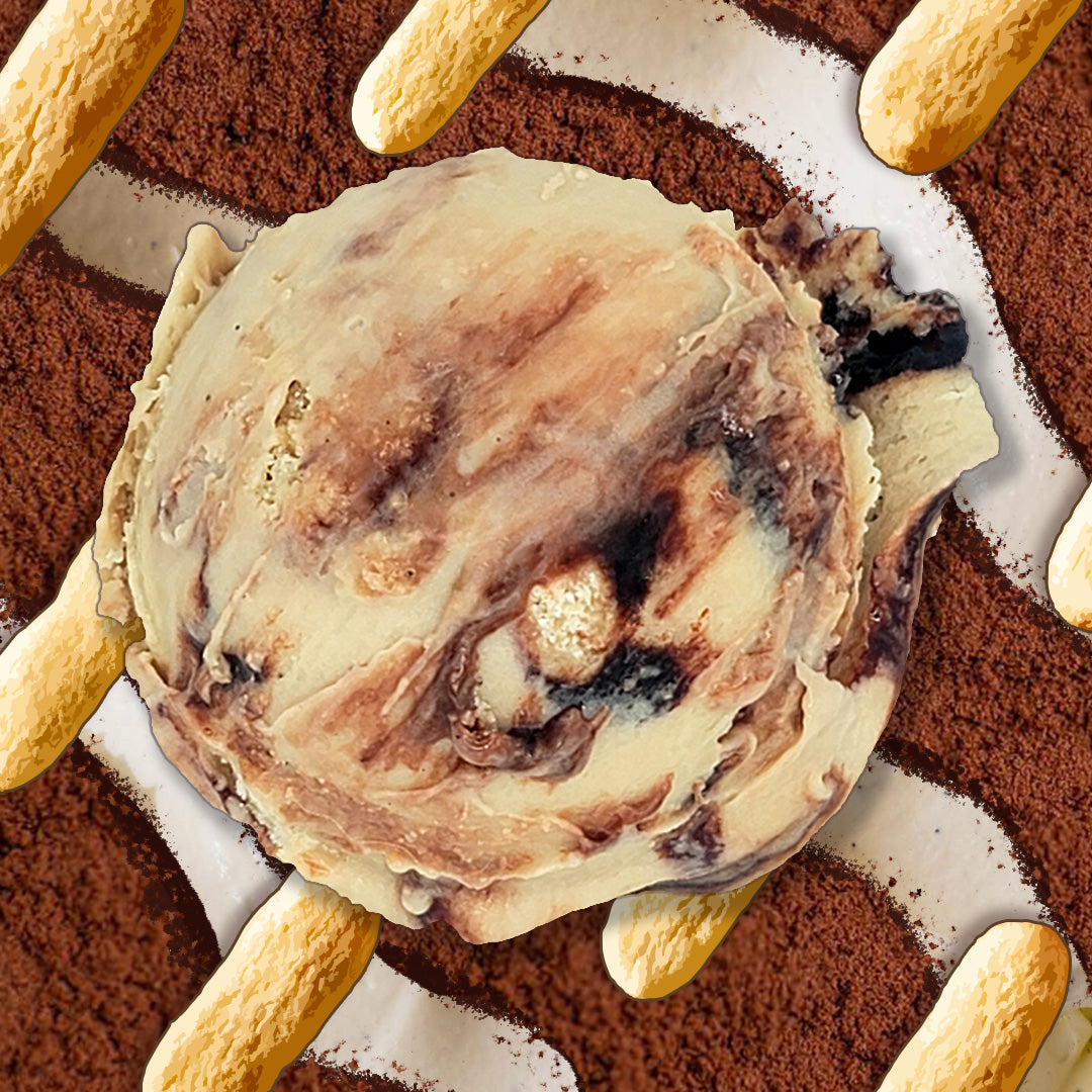 mascarpone gelato kissed with cold brew espresso and Madagascan vanilla bean, folded with gluten-free ladyfinger biscuit bits soaked in espresso syrup, and finished with thin layers of rich fudge ripple.