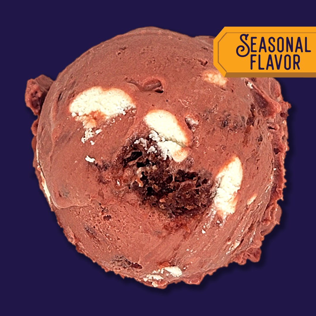 tangy cocoa and vanilla red velvet gelato folded with moist red velvet cake, swirled with rich cream cheese frosting. decadent, delightful creamy, and definitely delicious!